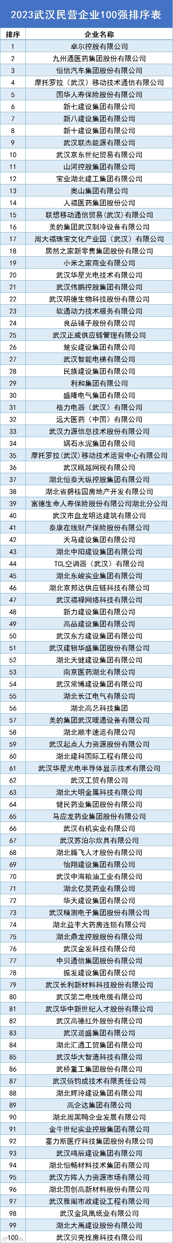 【2023武汉民营企业100强】