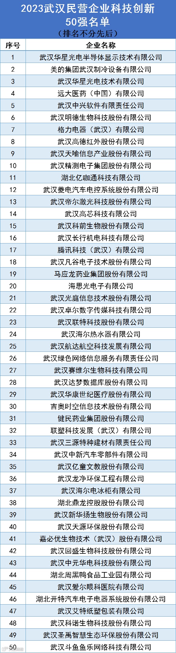 今年,武汉还首次发布新榜单——“武汉民营企业科技创新50强”。