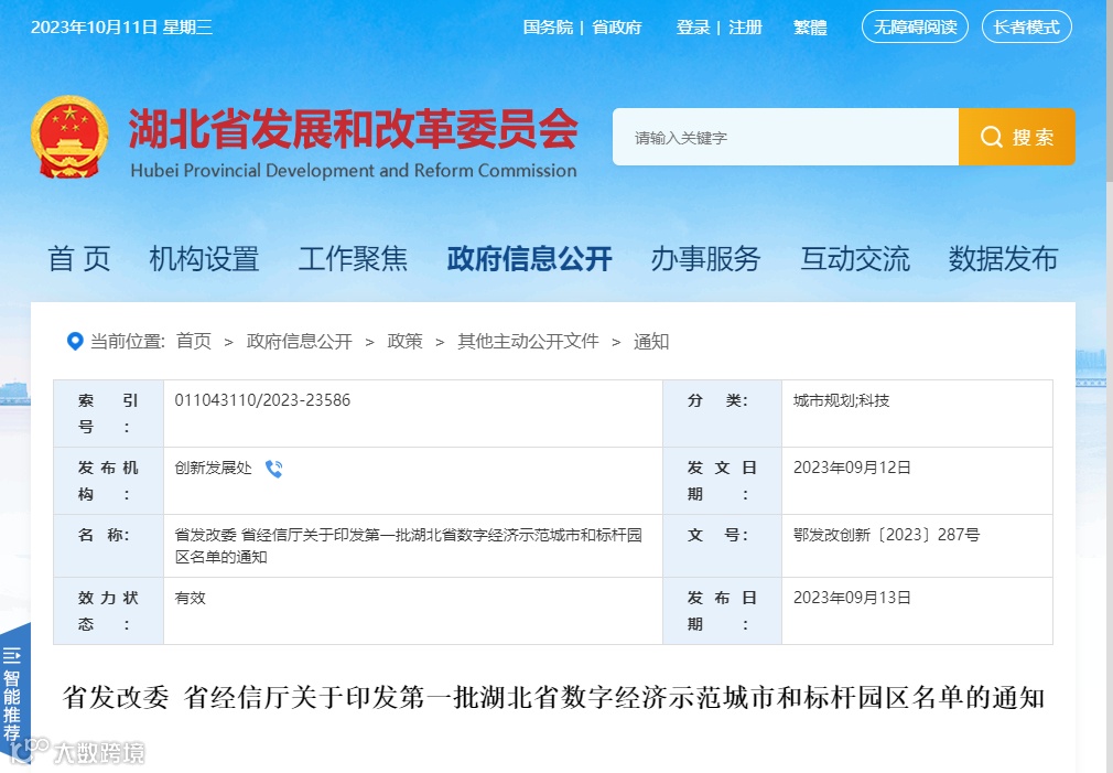 近日,《关于印发第一批湖北省数字经济示范城市和标杆园区名单的通知》(以下简称“《通知》”)发布,确定武汉等4个城市为湖北省数字经济示范城市,武汉东湖新技术开发区、武汉经济技术开发区等11个开发区为湖北省数字经济标杆园区。