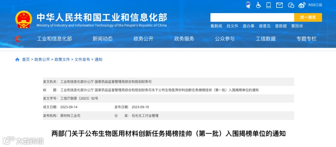 生物医用材料创新任务揭榜挂帅(第一批)入围揭榜单位具体名单如下: