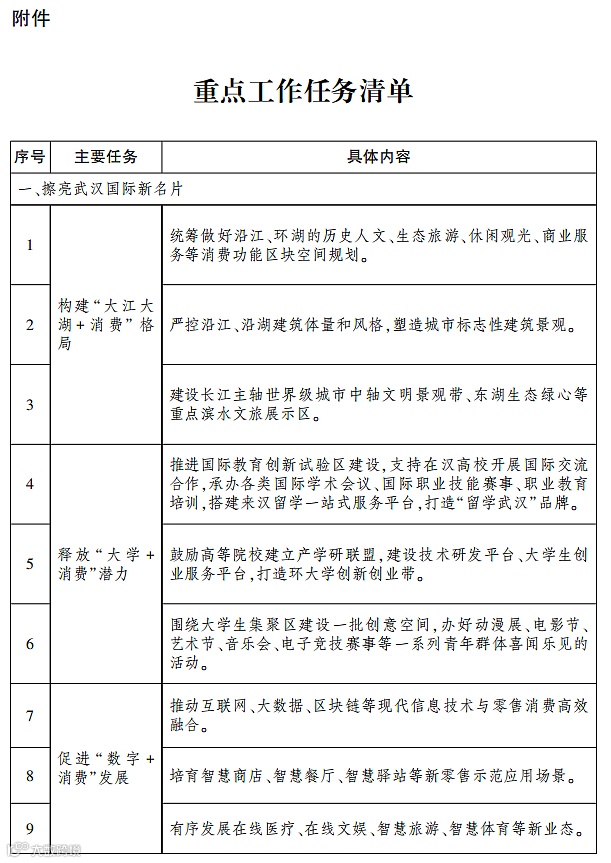 为加快培育建设国际消费中心城市,更好服务和融入新发展格局,3月17日,武汉市人民政府发布《市人民政府关于培育建设国际消费中心城市的实施意见》(简称《实施意见》)。《实施意见》围绕“擦亮武汉国际新名片”“培育国际消费新品牌”“布局消费场景新地标”“畅通国际消费新通道”“营造开放交流新环境”等多个方面,制定了一系列规划举措。