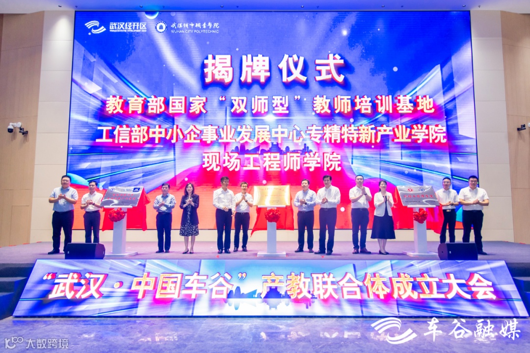 省政府教育督导室副主任督学王文森,东风公司党委常委、副总经理张祖同,市委常委、武汉经开区工委书记刘子清,工委副书记、管委会主任唐超,市教育局二级巡视员王池富,武汉城市职业学院党委书记邓院方、校长张英,江汉大学副校长李卫东,武汉商学院副校长刘萌,长江工程职业技术学院党委书记向家文,武汉船舶职业技术学院校长魏少峰共同推杆,“武汉·中国车谷”产教联合体正式启动。