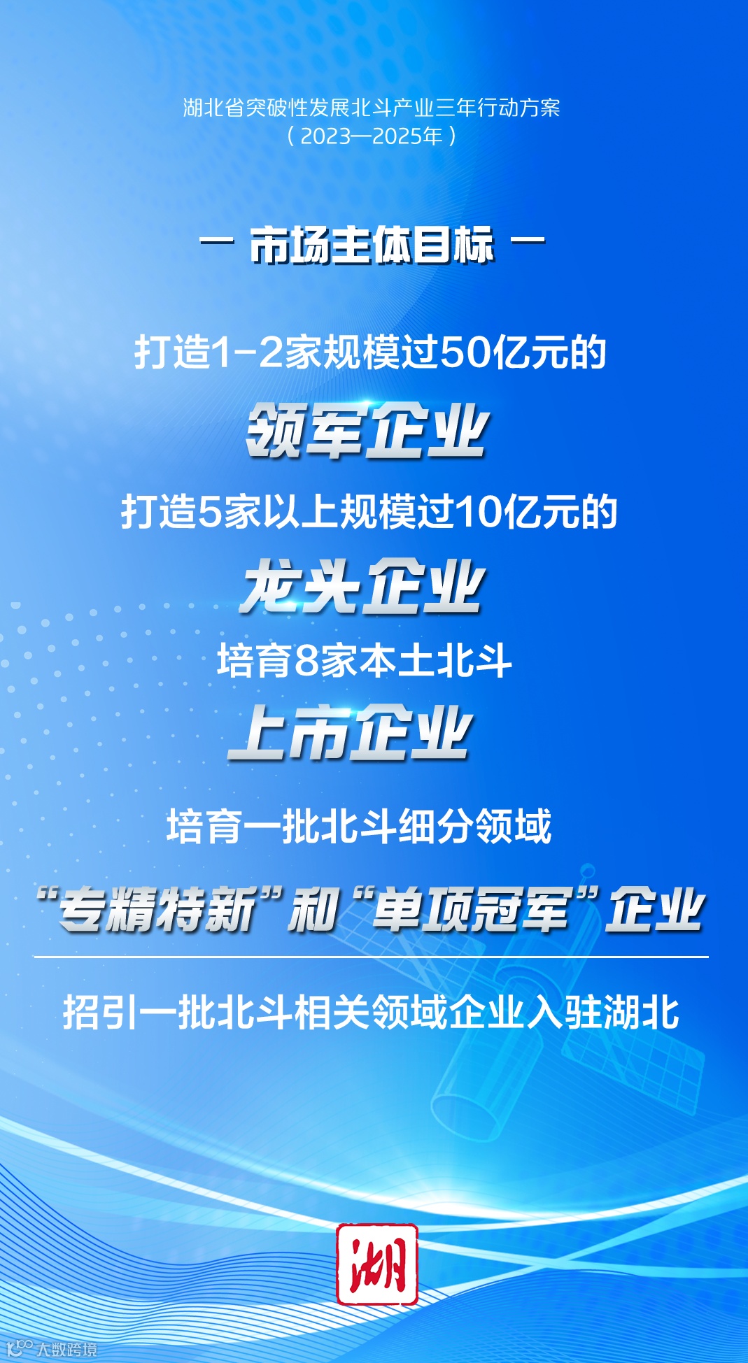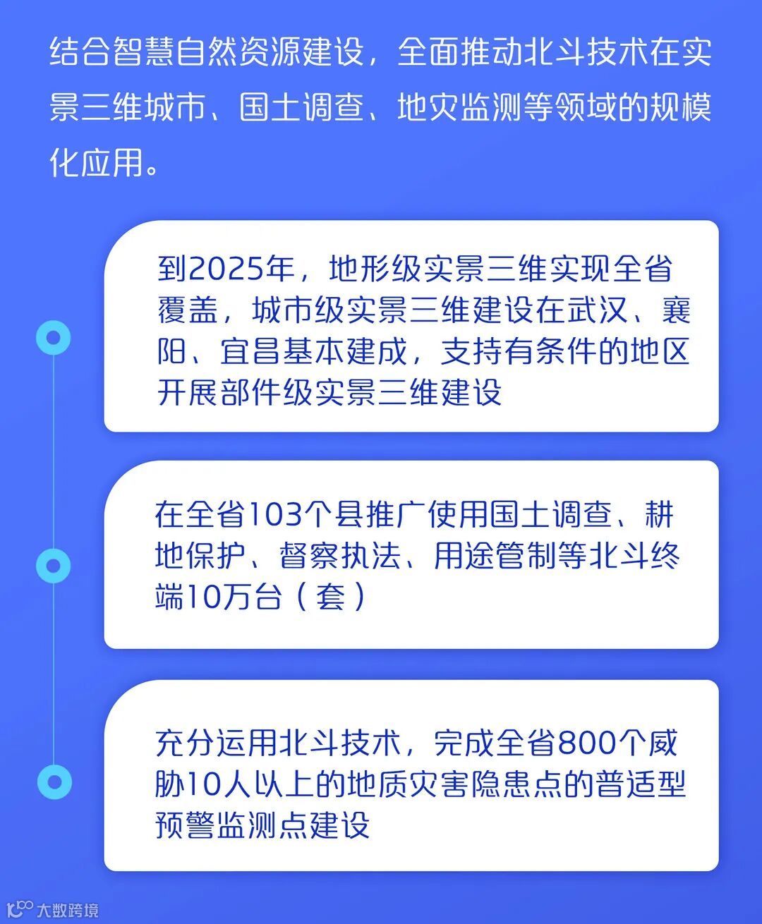 以超常规手段,以北斗在我省交通、水利、农业、自然资源、城市管理等重点行业,武汉、襄阳、宜昌等重点区域,以及大众消费领域的规模化应用为重要突破口,带动我省北斗企业加快发展壮大。