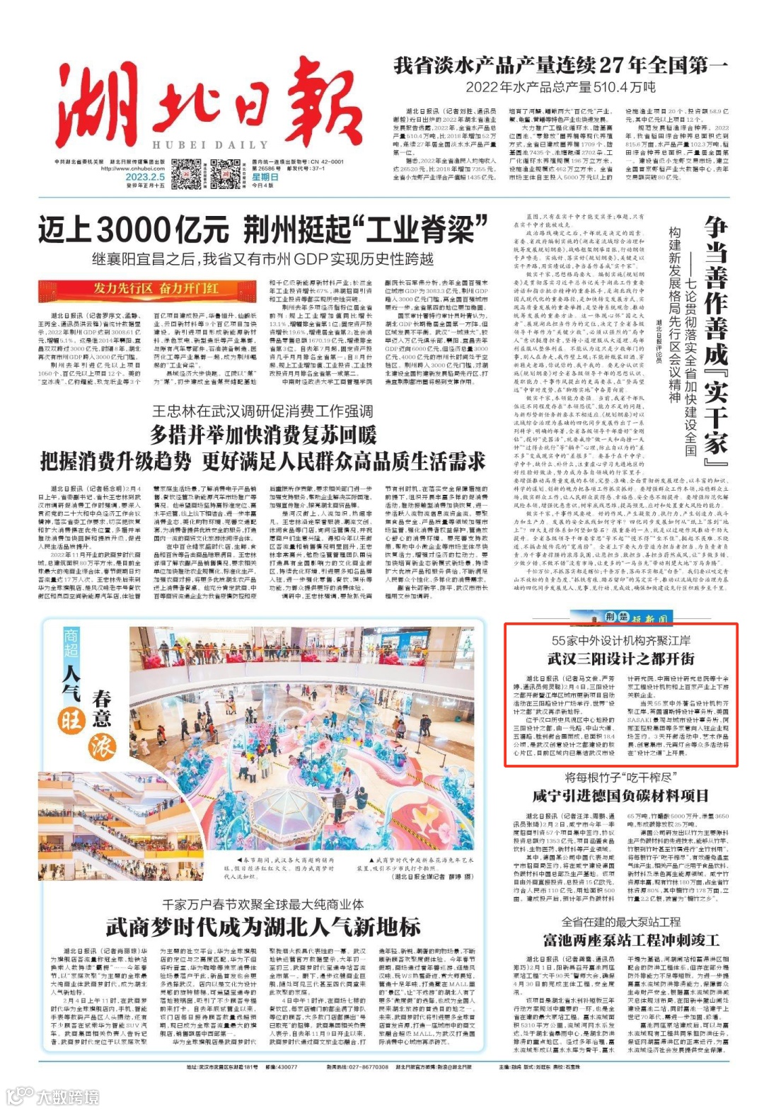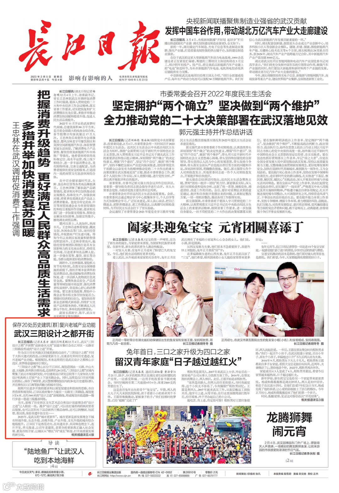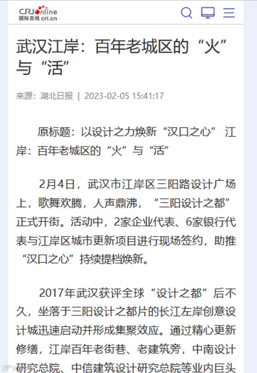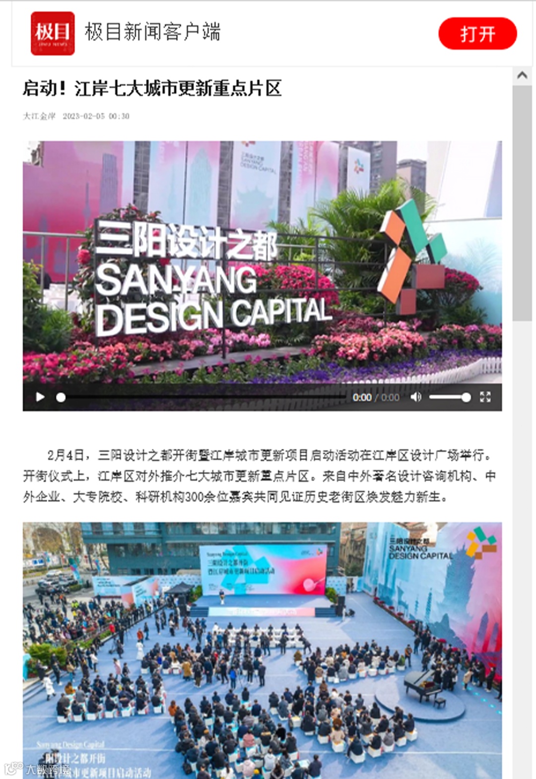 江岸七大城市更新重点片区亮相、多家企业现场签约、老里分众多游客打卡拍照……2月4日,三阳设计之都开街暨江岸城市更新项目启动活动,在江岸区设计广场成功举办,获人民日报、新华网、人民网、央广网、中新网、国际在线等中央级媒体全国推介,湖北日报、长江日报头版重点报道,荆楚网、长江云、武汉发布、今日头条、凤凰、新浪、腾讯、百度等新媒体平台全网发布。