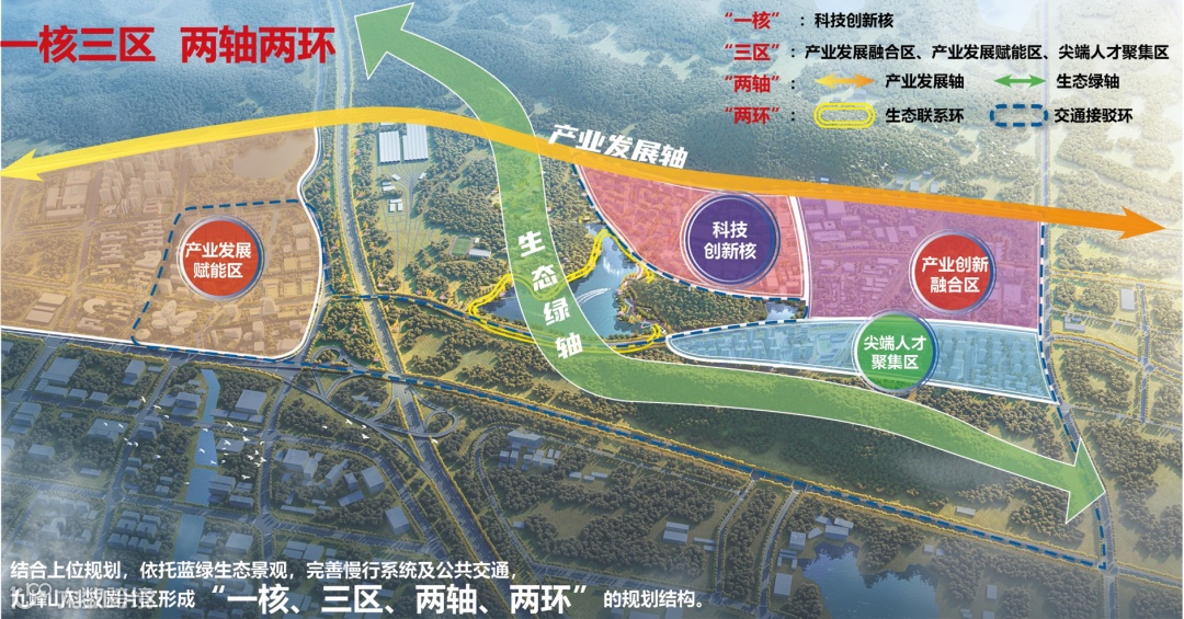 创新街区北至九峰一路、南至高新大道、西至光谷六路、东至未来二路,面积约14平方公里,打造以九峰山实验室为“科技创新核”,集产业发展融合区、产业发展赋能区、尖端人才聚集区为一体的“一核三区”格局。创新街区规划有人才公寓、商业中心、医院、学校、公园等配套设施,建成后将形成“十五分钟便利生活圈”。