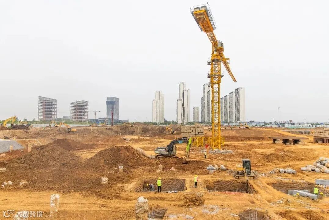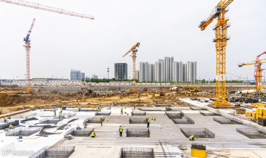 5月6日,在武汉汽车科技总部产业园,现场机器轰鸣、吊臂起降,大型机械开足马力,百余名施工人员有序作业,冲刺今年底主体结构封顶。