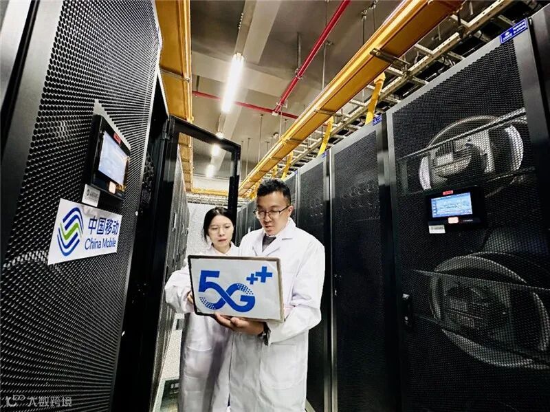 移动工程师在中国移动智算中心(武汉)维护设备。