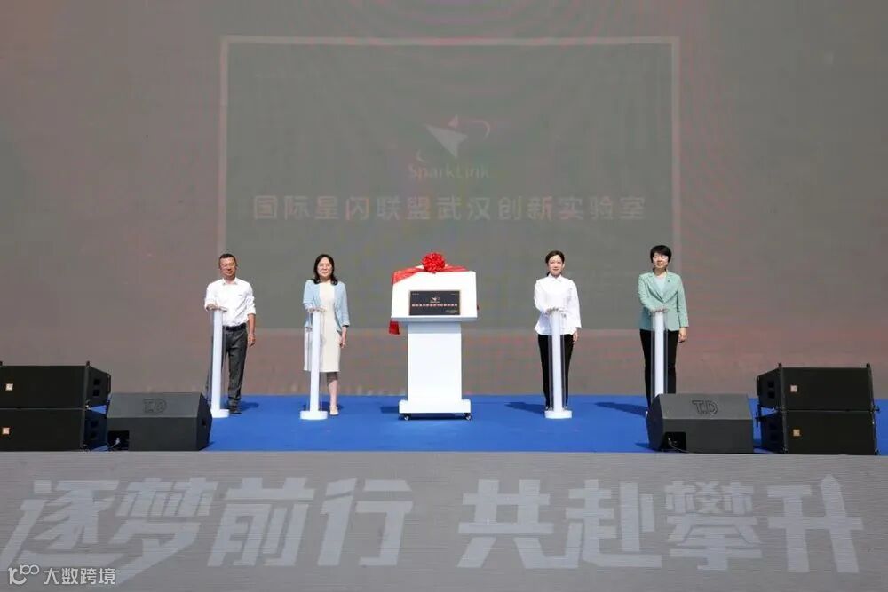 武汉市科技创新局局长董丹红、黄陂区委书记何建文、国际星闪联盟副理事长万蕾博士、攀升科技CEO沈国良共同为“国际星闪联盟武汉创新实验室”揭牌。