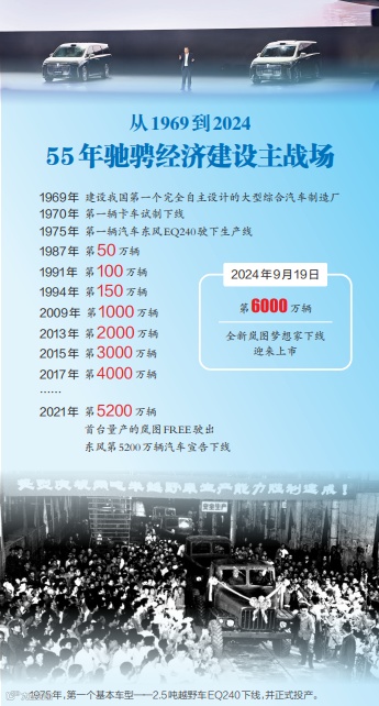 “东风始终铭记‘国家队’的使命任务。”东风汽车董事长、党委书记杨青说,55年、6000万辆,书写的是强军富民、产业报国的精彩篇章。伟大的时代造就了东风,东风也将努力在我国由汽车大国迈向汽车强国进程中“打头阵”“当先锋”。