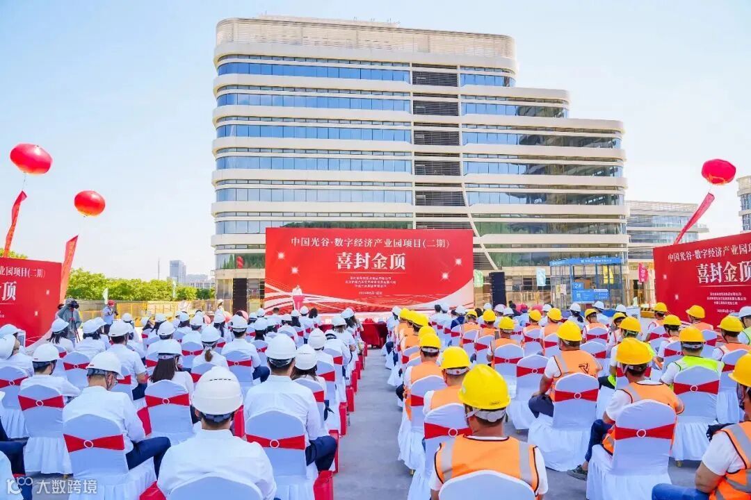 6月3日,中国光谷·数字经济产业园(二期),191.3米的7号楼成功封顶,标志着该项目中高度最高、施工难度最大的一栋超高层已阶段性完工。目前,二期在建地块均已全部封顶,预计2026年完成项目交付。
