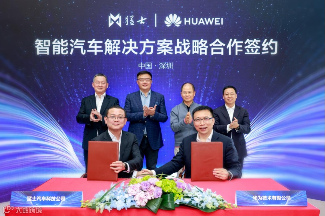 猛士汽车科技公司副总经理、CMO万良渝与华为智能汽车解决方案BU副总裁迟林春代表双方在协议书上签字。此次战略合作协议的签署,标志着东风猛士与华为的合作迈入崭新阶段。