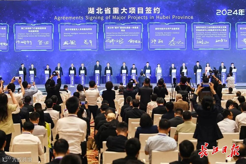 4月24日,在2024年“中国航天日”主场活动启动仪式上,包括襄阳市航天特种装备产业园、“楚天”超低轨通遥一体星座项目等在内,共18个湖北空天信息产业的重大项目现场签约,其中9个来自武汉。