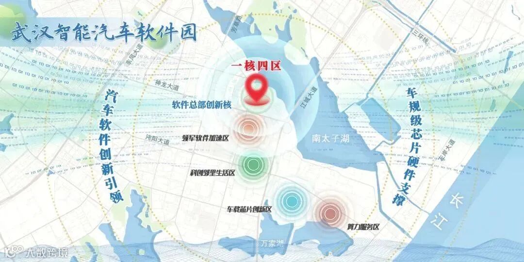以智能网联汽车为重点,武汉集聚了200余家智能网联终端企业,着力打造“光芯屏端网+车路云图”万亿产业集群。而软件技术是智能汽车未来发展链条上的关键一环,武汉经开区便成立了武汉智能汽车软件园,聚焦自动驾驶、智能座舱、车规级芯片和车联网等四大智能汽车软件领域,打造智能汽车软件和车规级芯片产业高地。