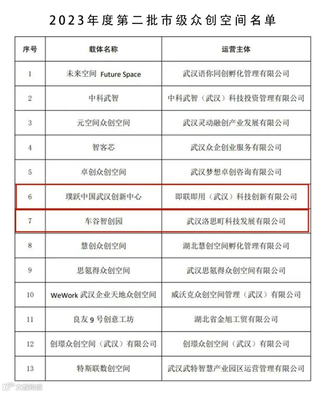 近日,武汉市科技局公布了2023年度第二批市级科技企业孵化器认定和众创空间备案名单,武汉经开区璞跃中国武汉创新中心、车谷智创园两家众创空间,中开院(武汉)创新孵化基地、乐客工场(武汉)科技企业孵化器两家孵化器载体成功上榜。