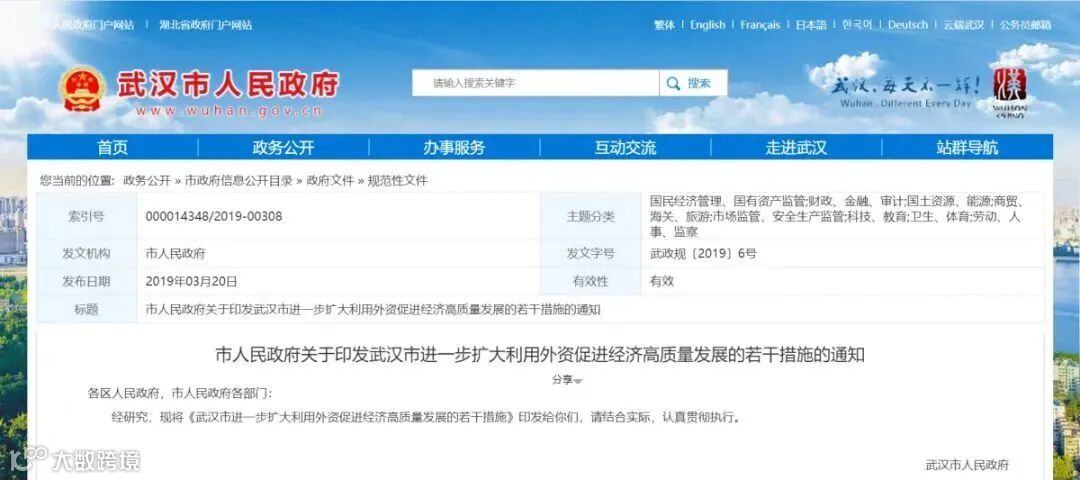 近年来,武汉将吸引外资企业来汉落户投资作为招商引资工作中的重点。早在2019年,武汉就发布了“外资12条”,针对性提出外资企业来汉发展的支持举措,强调内外资企业的平等地位,以营造一个外资友好型的环境和机制。