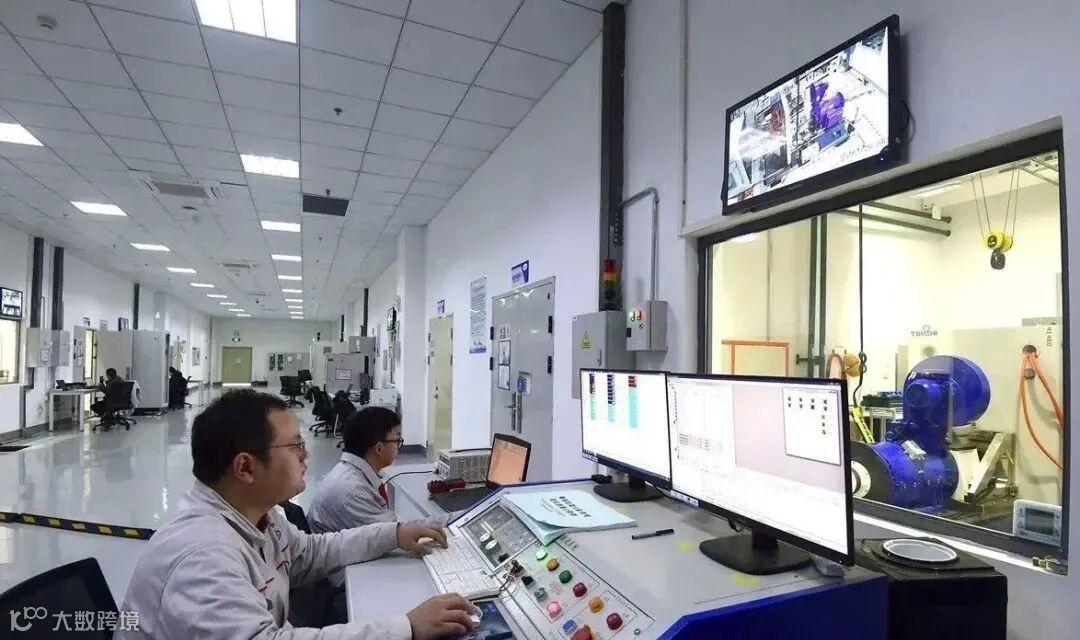 在电机实验室,一台驱动电机正在测试平台上来回“奔跑”。