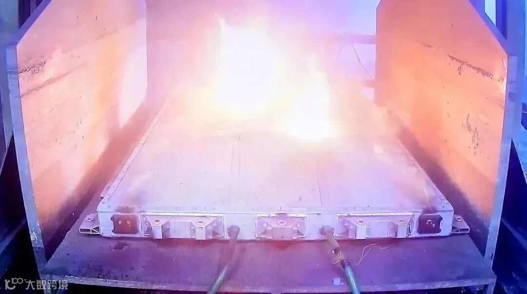 在电池安全综合试验室,可进行电池包破坏性试验。比如将电池包中电芯加热到100摄氏度以上,促使其发生热失控。检测工程师说,一款新车在量产之前,要对各种极端状况进行试验。比如万一发生车祸,汽车起火爆炸前,要提前预警,留给车内人逃离时间。这个试验可考察预警时间是否充分。