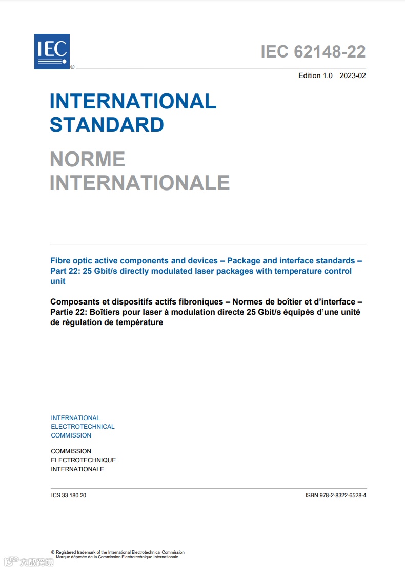 近期,国际电工委员会纤维光学有源器件工作组(IEC/SC 86C WG4)在美国旧金山召开工作会议,由中国信科集团旗下武汉光迅科技股份有限公司(简称:光迅科技)联合中国电子技术标准化研究院制定的《光纤有源元件和器件-封装和接口标准 第22部分:带温度控制单元的25Gb/s直接调制激光器封装》标准,成功通过了IEC专家讨论,并获IEC正式批准并发布。该标准规定了25Gb/s DML激光器封装规范,相关产品广泛应用在5G、数据中心和WDM传输网络设备,这是光通信有源器件领域第一项由我国牵头起草的光通信有源器件国际标准。