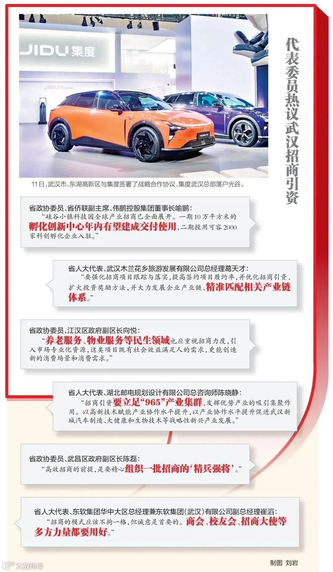“从政府到园区,从社区到乡间,我们都嗅到春的气息,人勤春来早。”省人大代表,武汉木兰花乡旅游发展有限公司总经理、姚家集街道杜堂村党支部第一书记葛天才说,抓投资、抓招商引资是武汉能级提升关键之举,今天的投资就是明天的生产力,投资保持高位,将不断激发城市潜力。