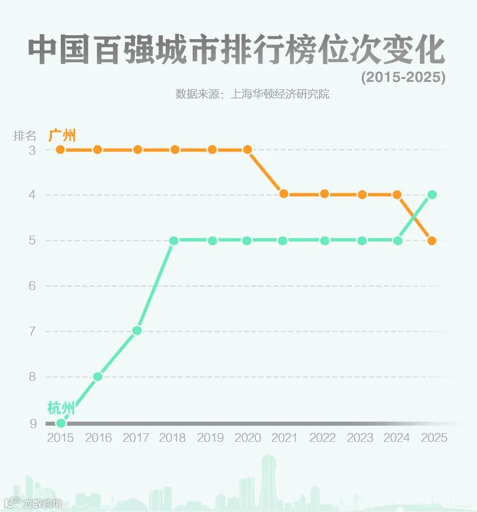 中国百强城市排行榜这10年,杭州从第9到第4,广州从第3到第5,发生了什么?