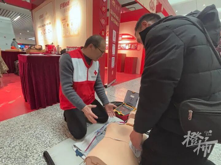 红十字志愿者现场教授心肺复苏和AED使用,1480人带走“救命技能”。来自四川的建筑工人蒋师傅在老师指导下,先学了心肺复苏的胸外按压,又学会了操作AED(自动体外除颤仪),根据仪器指示,按压、吹气……学完后,蒋师傅直言:“万一遇到紧急情况,我也有底气帮忙了!”。