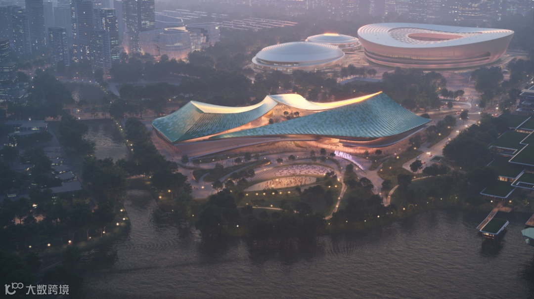 作为这条中轴线上的“气质担当”,杭州未来国际演艺中心选址于中轴线南端的核心节点,毗邻梦溪水乡,意在打造世界级城市中轴线上的璀璨明珠。