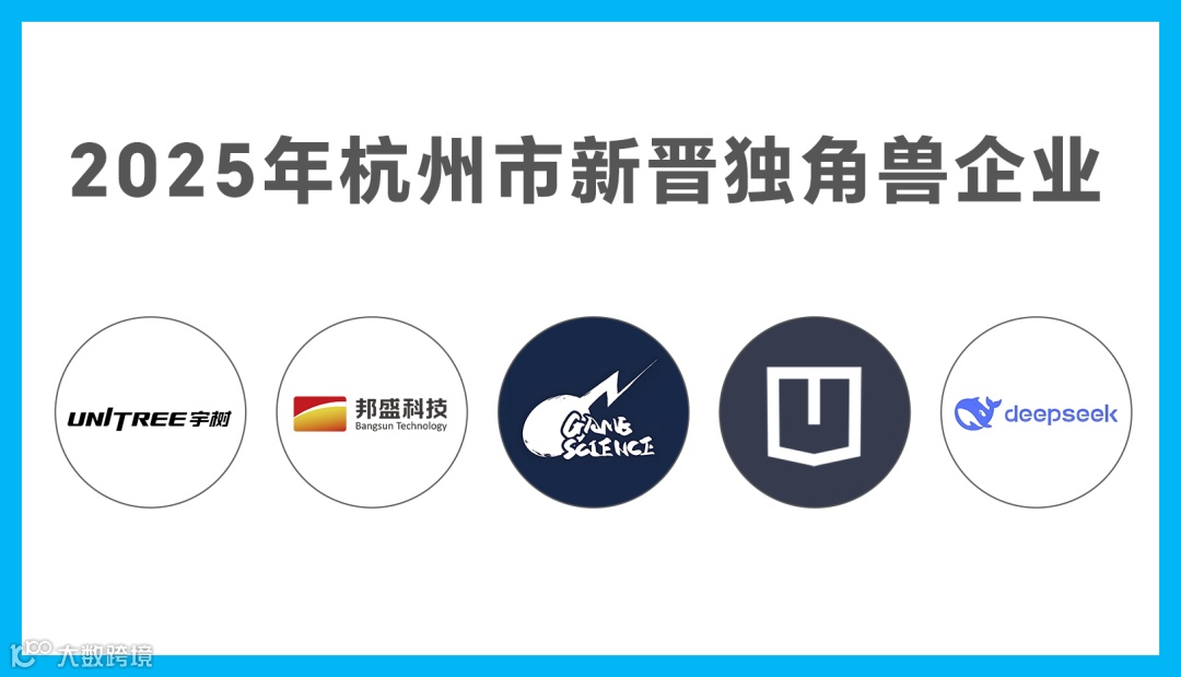 杭州市新晋独角兽企业共5家,分别是(按首字母排序):邦盛科技、醇氢科技、DeepSeek、游戏科学、宇树科技。
