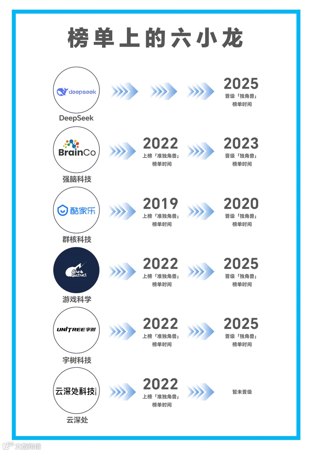 值得一提的是,“六小龙”都在榜单中,上图为6家企业具体上榜时间。