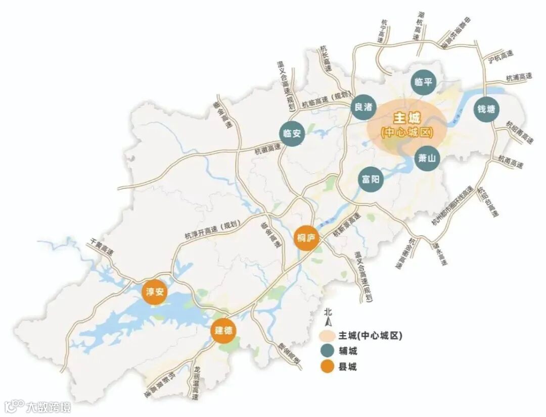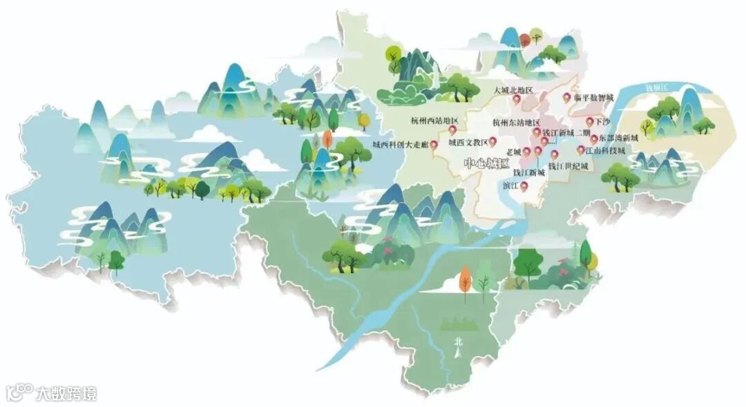 中心城区东部包含钱江新城、钱江新城二期等区域,提供金融服务、对外贸易等功能。