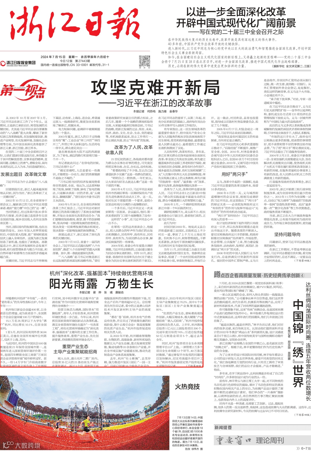 与此同时,杭州的中国民企500强数量连续21年保持全国城市第一,连续两年进入国家营商环境评价第一方阵,连续四年蝉联全国工商联“万家民营企业评营商环境”城市榜单冠军。前不久,一份1.4万字专门介绍我省数字化营商环境的英文报告登上了世界银行官网,其中杭州数字化企服平台“亲清在线”作为中国优化营商环境典型案例向全球推介……