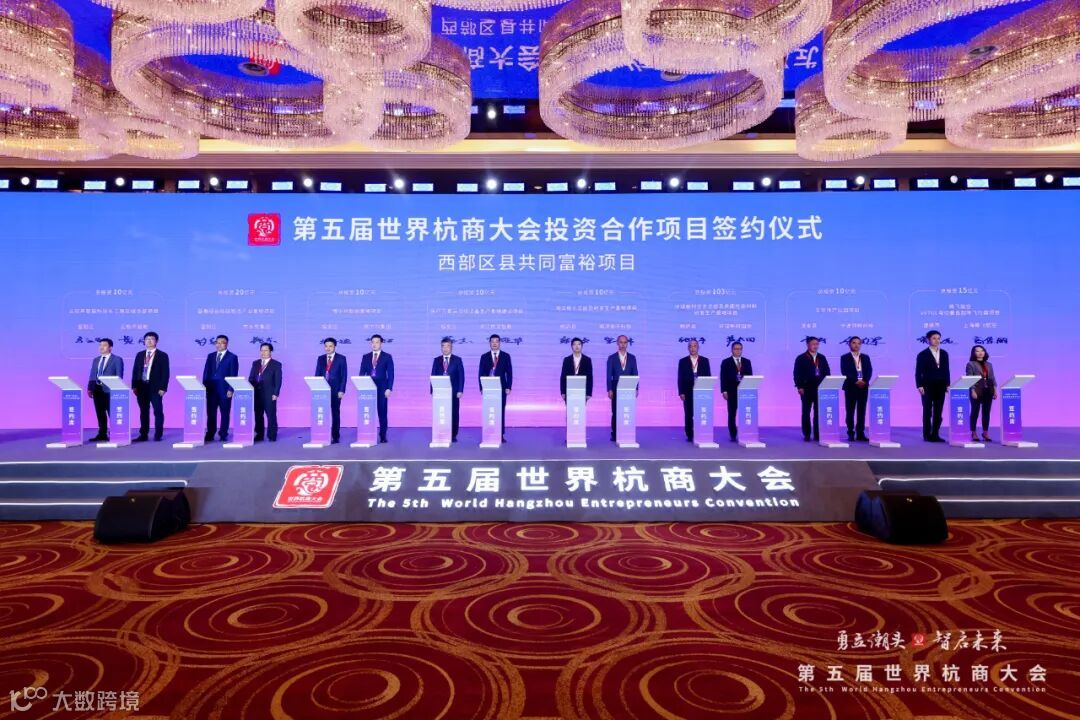 11月7日上午,以“勇立潮头·智启未来”为主题的第五届世界杭商大会在杭州开幕。大会期间,举行投资合作项目签约仪式,市投资促进局共组织场内场外签约项目33个,涉及总投资526亿元,平均单个项目总投资超15亿元。