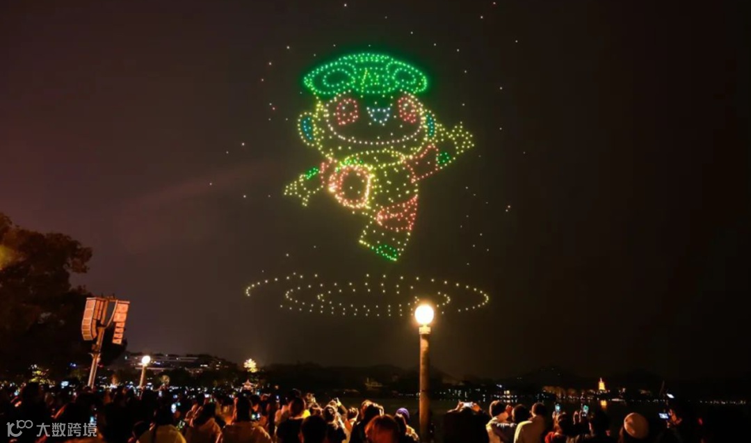 今年是亚运年,为迎接亚运会召开,杭州还准备了一份新惊喜,从 4月24日开始的“亚运主题灯光秀”,数百架无人机点亮夜空,成为杭州另一个出圈的夜间盛景。