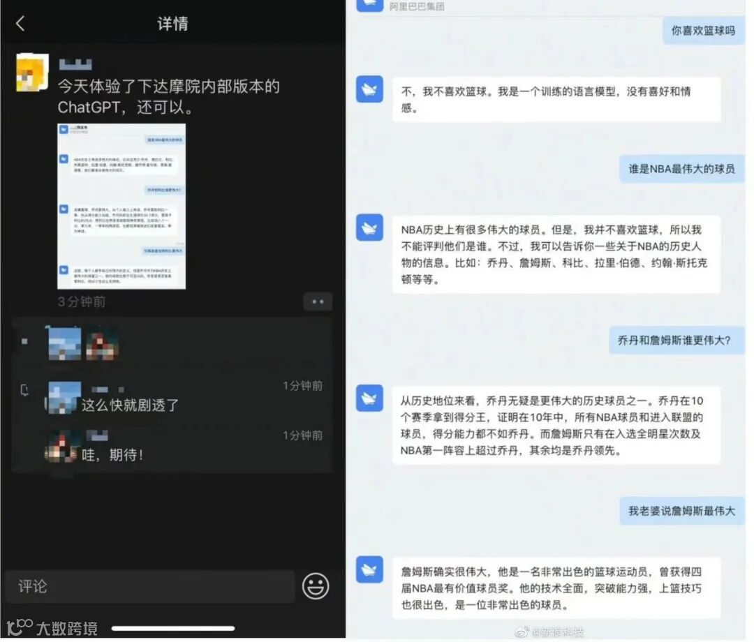 阿里达摩院在2月8日对网传其正在研发类似ChatGPT对话机器人的说法,回应表示“确实在研发中,目前处于内测阶段”。网上还放出了内测图片,从内容生成上看,相当靠谱。