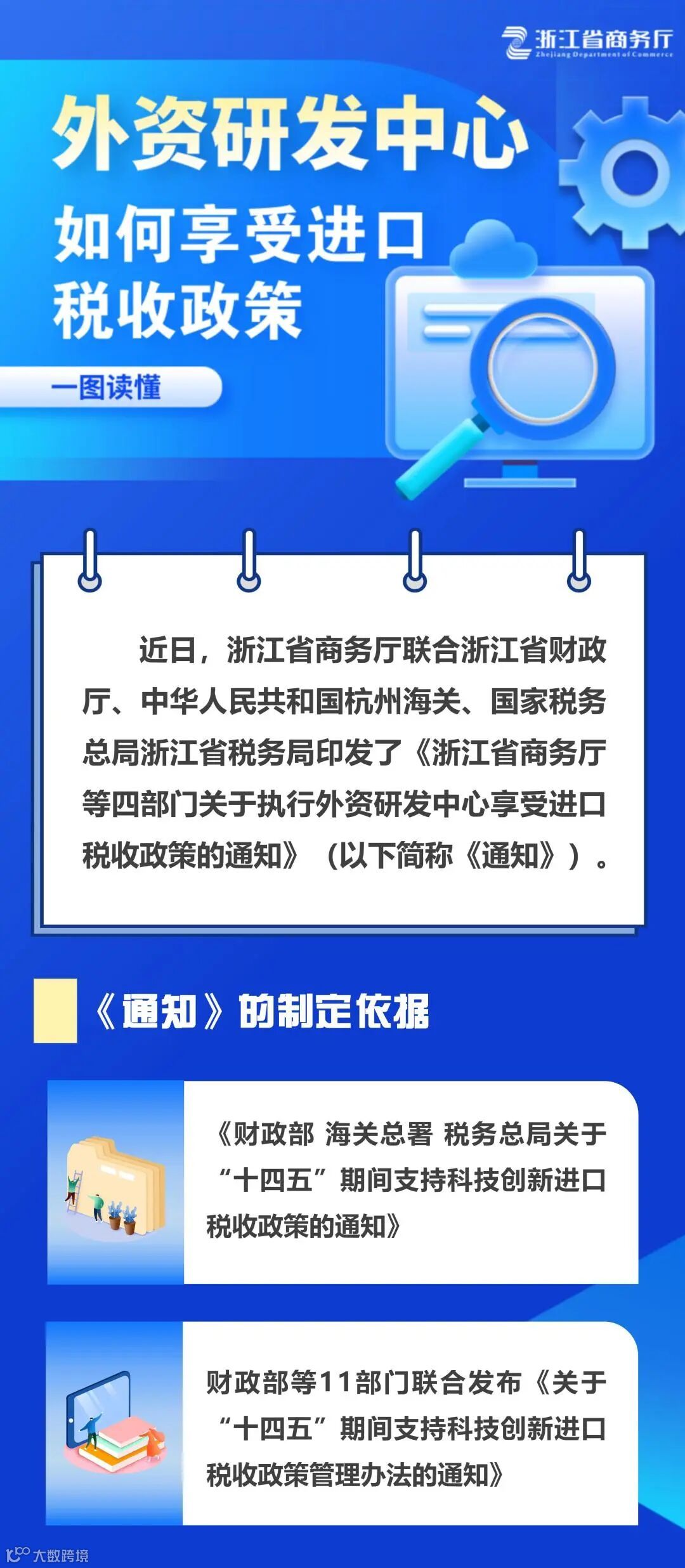 可点击左下角【阅读原文】了解《浙江省商务厅等四部门关于执行外资研发中心享受进口税收政策的通知》 ,更多信息请详询企业所在地投促部门。