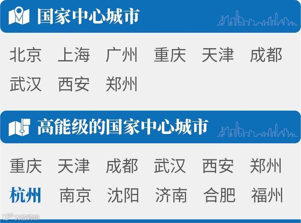 以杭州为例,浙江省“十四五”规划纲要及今年的省政府工作报告同时提到全面提升中心城市能级,唱好杭州、宁波“双城记”,大力培育国家中心城市。“着力建设国家中心城市”也在杭州市“十四五”规划纲要中被明确提出。