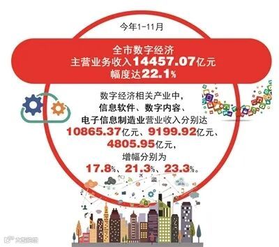 榜单背后,是一组沉甸甸的数据。2021年前三季度,全市数字经济核心产业实现增加值3521亿元,同比增长14.8%,占GDP比重达到26.8%。1—11月,实现主营收入14457亿元,同比增长22.1%。
