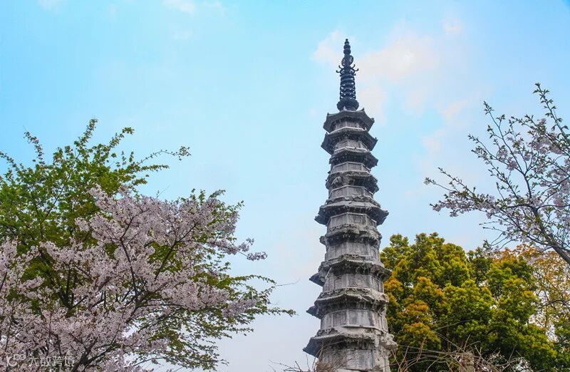 保俶塔位于宝石东端山脊,建于北宋太平兴国元年(976),又名应天塔、宝石塔等。现塔身为1933年重修,由塔基、塔身、塔刹三部分组成,共七层,高45.3米。保俶塔造型挺秀,在西湖景观整体视域空间中,与雷峰塔形成著名的“保俶如美人,雷峰如老衲”的南北对景。