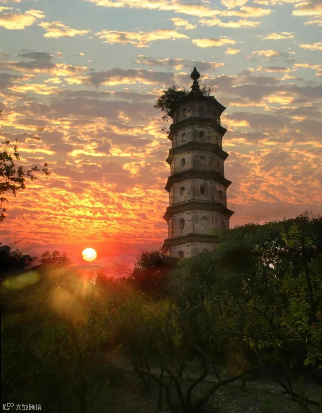 八边形的楼阁式塔建筑,塔基雕刻有山峰、海浪等纹饰,象征着“九山八海”。