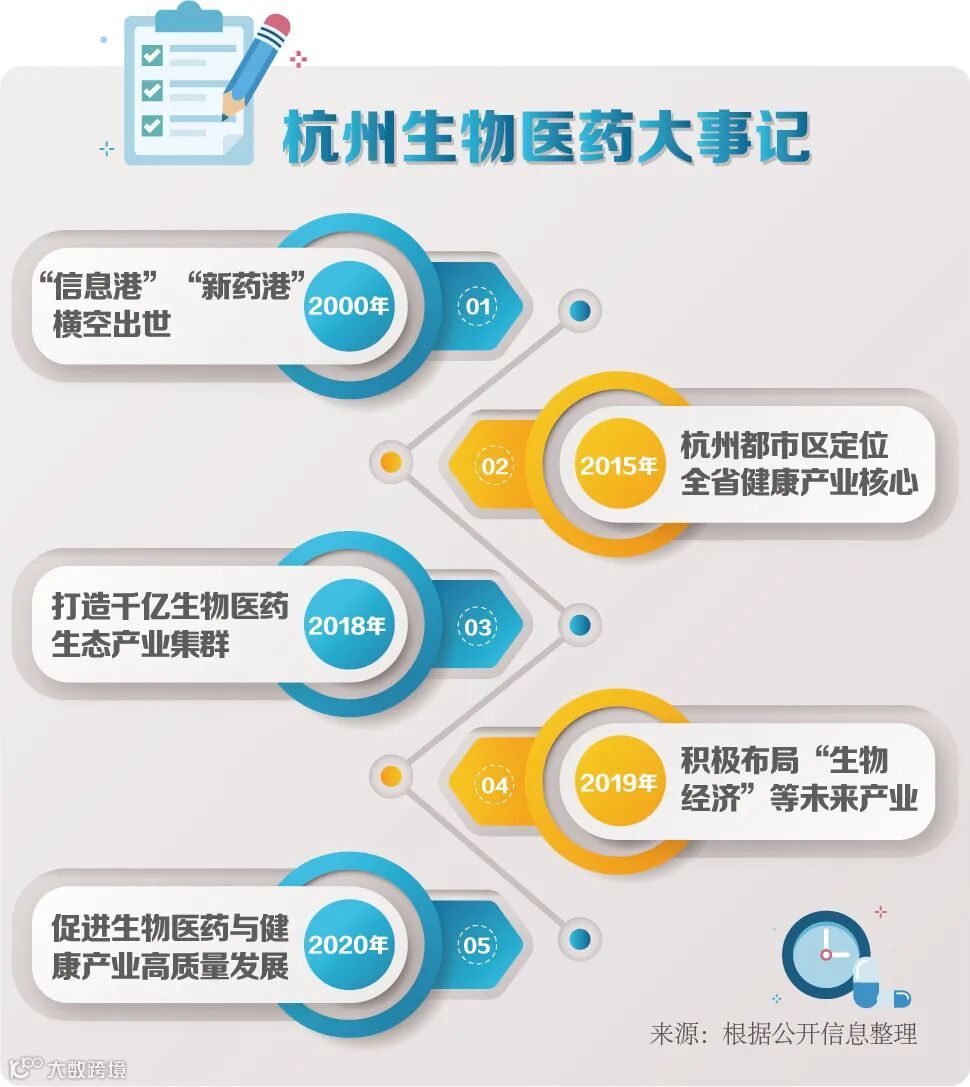事实上,杭州在本世纪初就开始规划生物医药产业的发展,早在2000年就提出了“信息港”和“新药港”两港建设,是当时杭州的“一号工程”。