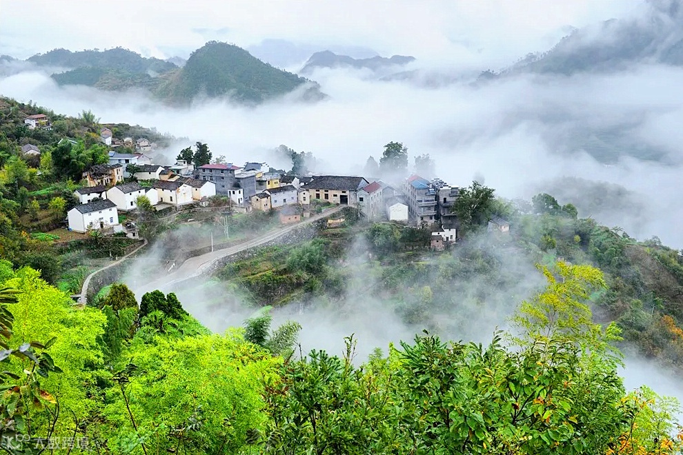 晨雾、晒秋是百照村的经典景色。爬到百罗山顶,可看云起雾涌,一览众山小,白墙黛瓦就隐现在古树密林间,错落有致,入眼即是画。