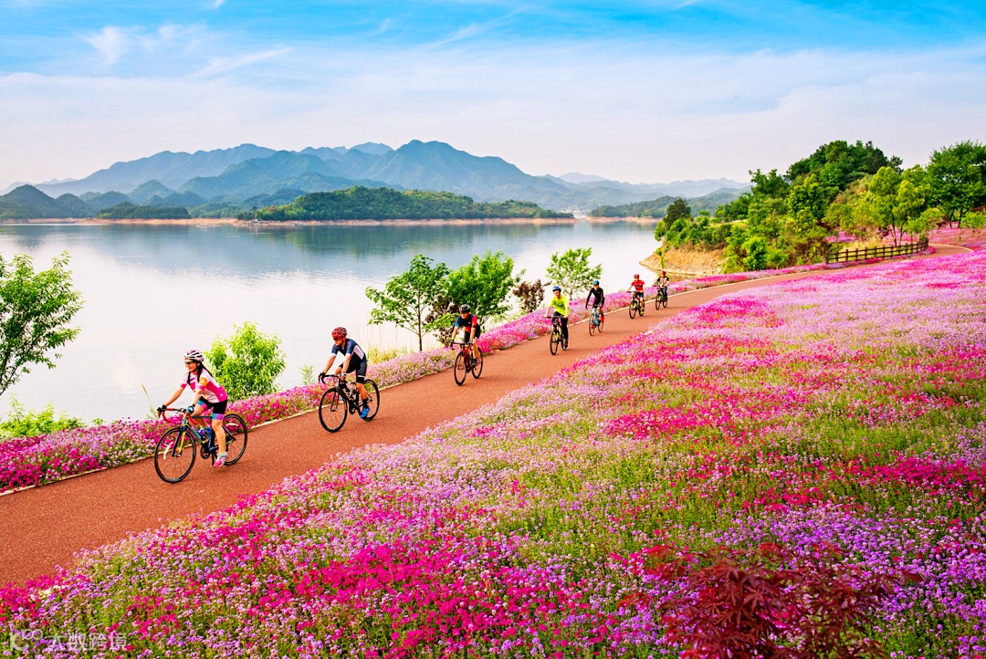 依偎在千岛湖畔,千汾线是国内最美的环湖骑行绿道,就如一条飘舞的长带拂过崇山峻岭。秋天是它最美的时节。一路走过,一坡即一景。山峦叠嶂,远远望去,红、黄、绿色树叶与四季花海交织,煞是好看。
