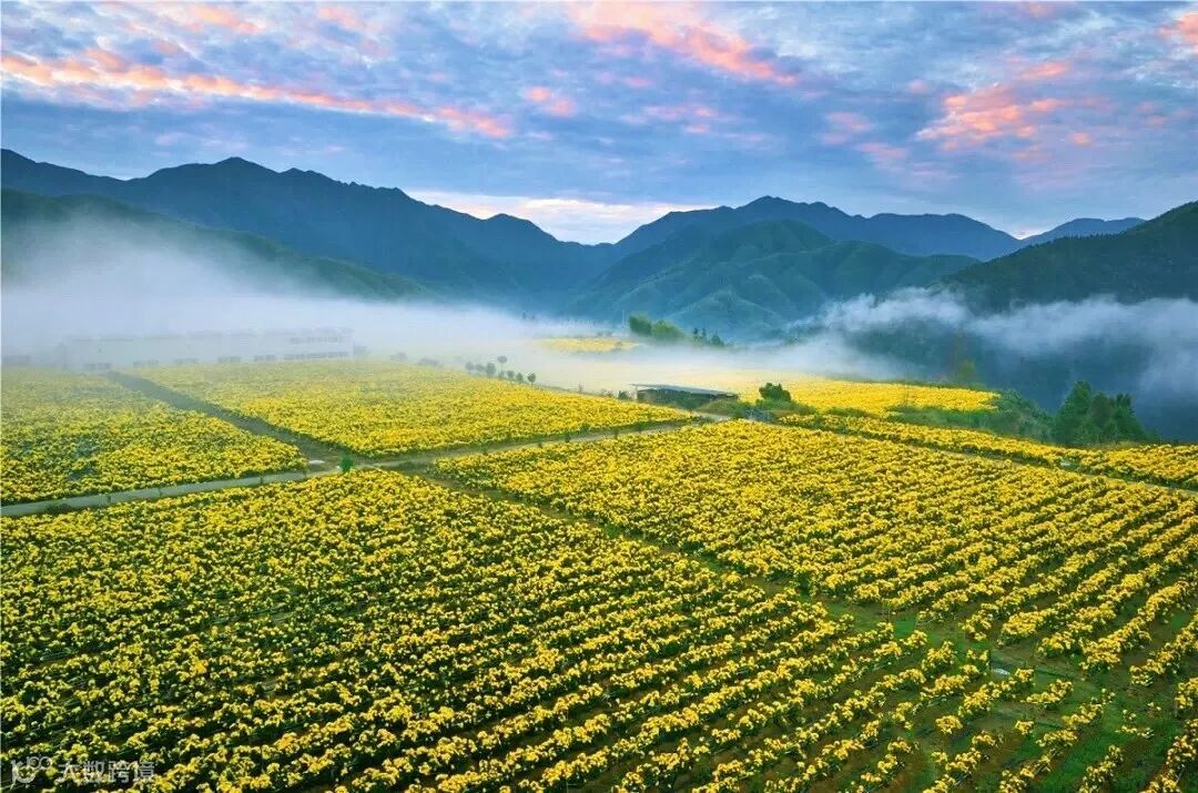 一壶好茶,一片清秋,坐落于千岛湖的金丝皇菊基地,每到金秋时节,100余亩的山顶,开满了金黄色的金丝皇菊。秋风起,嗅到菊花清香的地方,就可望到成片的田野菊海,俨然一片秋日丰收景象。