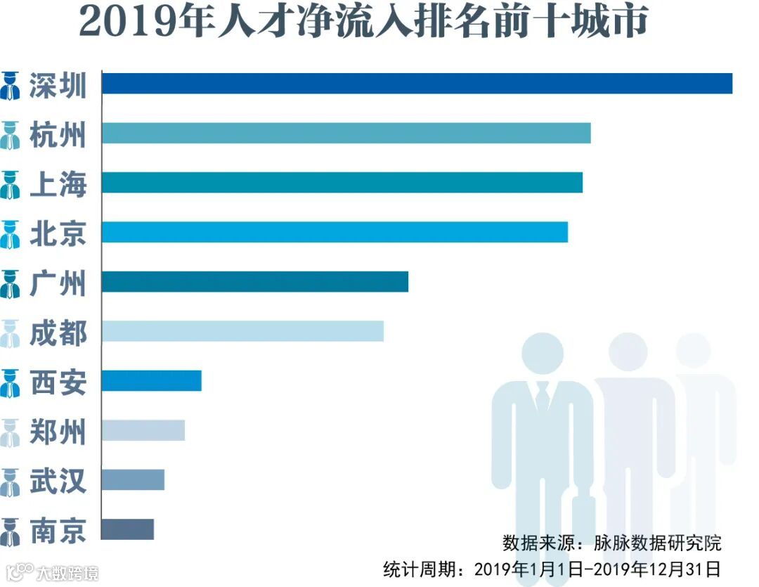 根据脉脉数据研究院发布的《人才流动与迁徙报告2020》显示,人才净流入方面,深圳依旧第一,但杭州已力压京沪,成为全国人才流入“第二位”城市。