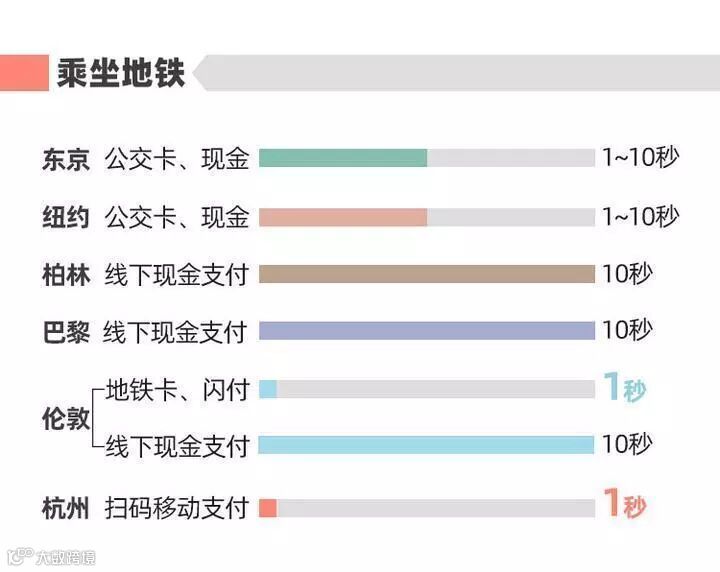 衣食住行,行在最后,却是如今与都市人群工作、生活最为息息相关的一环。在公共交通领域,无论是地铁还是公交,五座国际城市的购票方式均以公交卡和现金为主。只有杭州目前已经实现了主城区近5000辆公交车和全部地铁站点的移动支付全覆盖,通过支付宝、“杭州公交APP”、银联云闪付和多个手机厂商自带的支付功能均可进行手机扫码,实现真正的“无现金”出行。