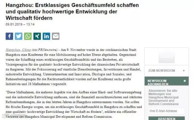 △ 德新社旗下news aktuell网站发文称赞“杭州的商事登记速度堪比国际一流城市”。