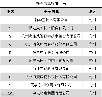 在电子信息领域,前十强被杭州企业牢牢“占领”。