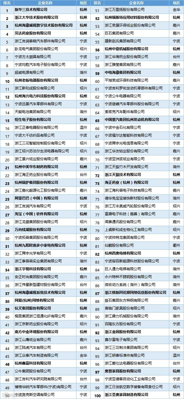 11月12日,在浙江省高新技术企业发展大会上,2018年浙江省国家高新技术企业创新能力百强榜单发布。
