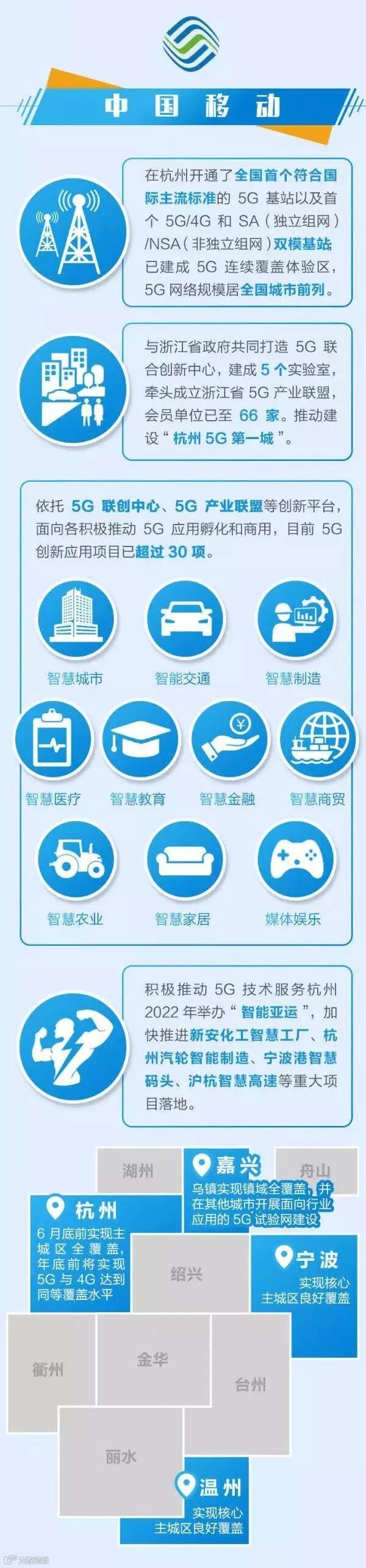 作为数字经济先行者,杭州致力于建设成为世界级5G新型基础设施、产业生态和融合应用的标杆城市。