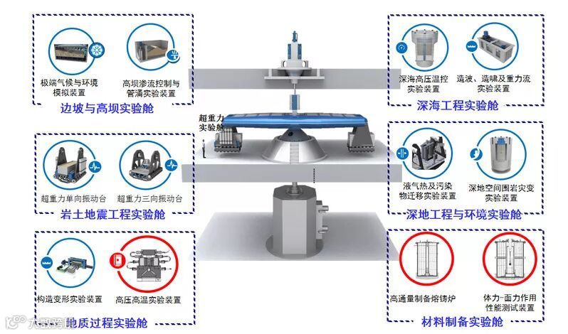 有了超重力效应赋予的一眼“千里”、一眼“万年”的实验能力,许多高难度课题研究成为可能。CHIEF的6座超重力实验舱,将分别开展边坡与高坝、岩土地震工程、深海工程、深地工程与环境、地质过程、材料制备等6个领域的科学研究。