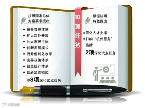 按照国家总体方案要求,提出了完善管理体制、扩大对外开放、壮大市场主体、创新发展模式、提升便利化水平、完善政策体系、健全统计体系、创新监管模式等8项深化试点任务,并根据杭州特色提出了强化人才支撑、打响“杭州服务”品牌2项深化试点任务,共计10项任务。